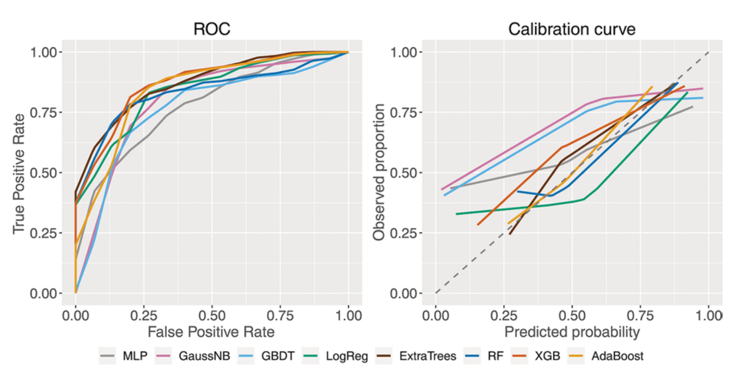 The most distinctive parameters with p < 0.005 were the peak negative velocity, peak amplitude, and negative flow. From the ML algorithms, the Adaptive Boosting classifier showed the highest specificity and best discrimination potential overall, with 80.4% ± 2.9% accuracy, 72.0% ± 5.6% sensitivity, 84.7% ± 3.8% specificity, and 0.812 ± 0.047 area under the receiver operating characteristic curve (AUC). The highest sensitivity was 85.7% ± 5.6%, reached by the Gaussian Naive Bayes model, and the best AUC was 0.854 ± 0.028 by the Extra Trees classifier.